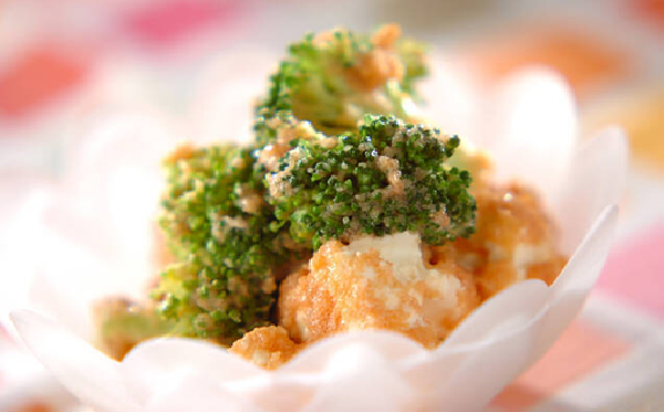 定番の明太マヨネーズに、クリームチーズとブロッコリーを合わせた、食べ応え抜群の和え物です。色鮮やかな見た目なので、食卓を彩る副菜としても重宝します。味がぼやけないよう、茹でたブロッコリーの水気をしっかりと切るのがポイントです。