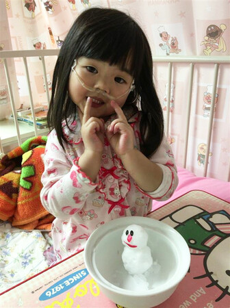 〔写真説明〕生前、病室で雪だるまをつくる宮崎花梨ちゃん=2016年1月24日、熊本市東区(遺族提供)