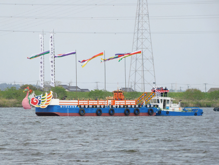 〔写真説明〕利根川を巡行する御座船=15日、千葉県香取市