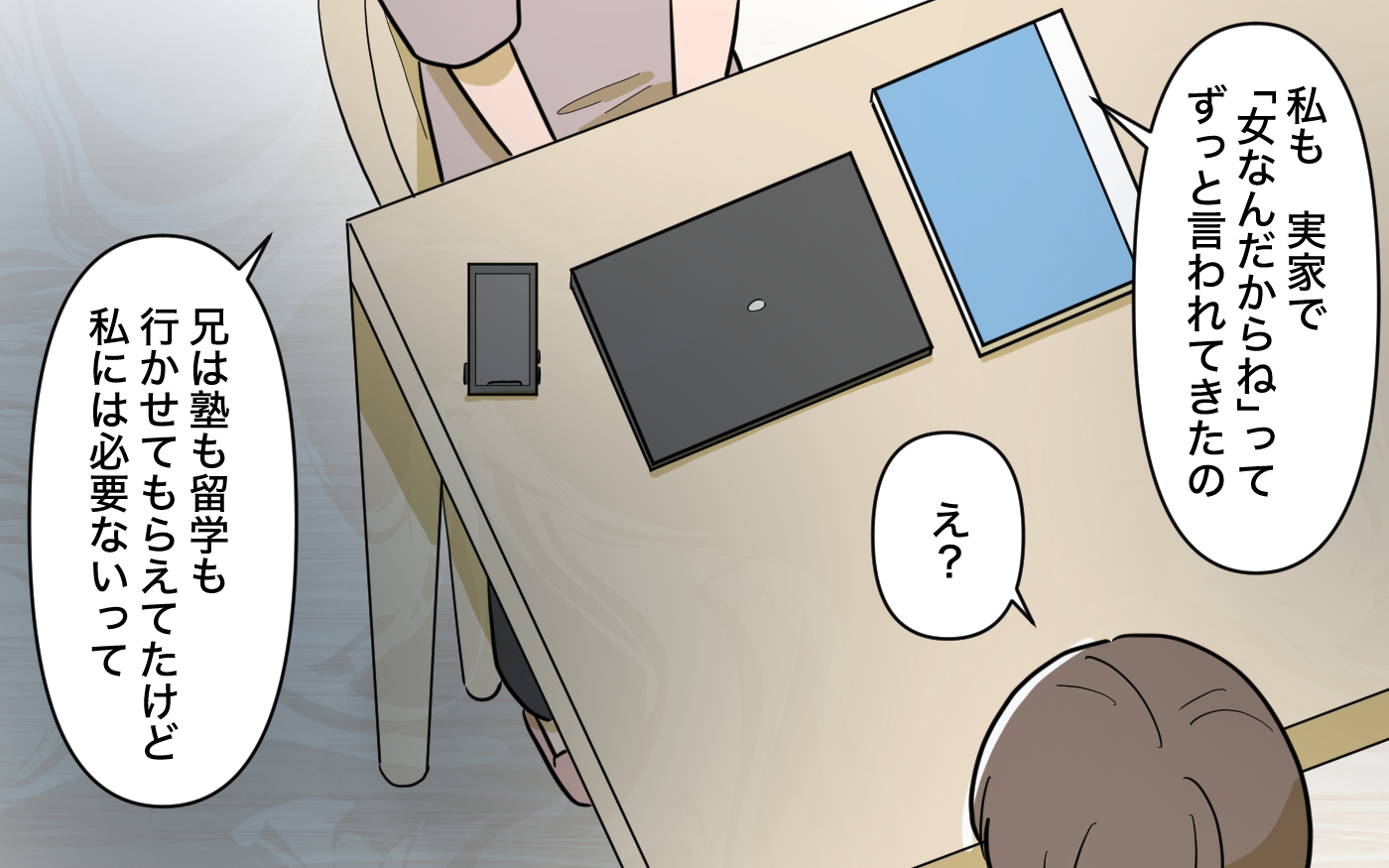 遥は驚きながらも「…やっぱり」と言った。そして遥は初めて話してくれた。自分も実家で「女なんだからね」とずっと言われてきたこと。「だから絵美さんを見ていて、ずっと何か変だと思ってた。放っておけなかった」と。