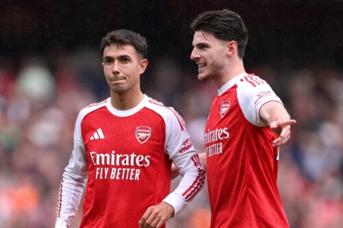 スビメンディとライスはセンターバック(CB)を除いたプレミアリーグ所属選手の中で、2番目と4番目に多い出場時間を記録。一方、中盤のバックアッパーとして昨年夏に加入したデンマーク代表MFクリスティアン・ノアゴールのプレータイムは全体の「20%」に留まっている。また、右サイドバック(SB)を務めているオランダ代表DFユリエン・ティンバーへの依存度も高く、負傷で直近6試合を欠場しているのにも関わらず、プレータイムの割合は「68%」だ。