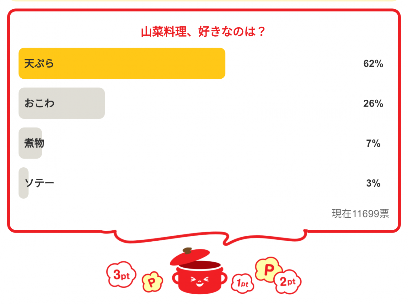 ・1位 …天ぷら 62%