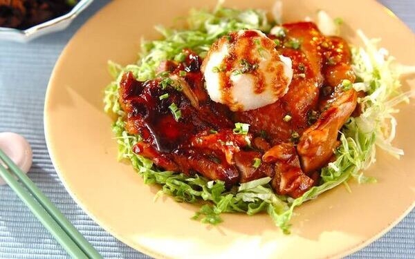 いつものタレにショウガ汁をプラスするだけで、風味豊かで爽やかな後味に。ショウガの香りが食欲をそそり、肉のジューシーさを引き立ててくれます。少し濃いめの味つけなので、たっぷりの大根おろしを添えて一緒にいただくのが、イチオシです!