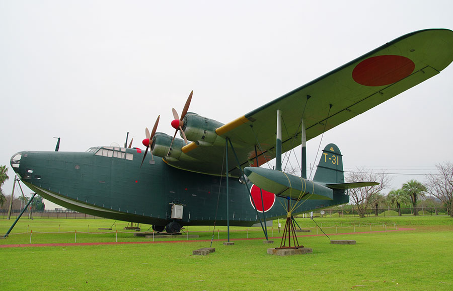 同機は、旧日本海軍が保有した全長28m、全幅38mの大型飛行艇です。その巨体にもかかわらず最高時速470km/hに達したほか、主翼や胴体各部に設けられた計14個の燃料タンクにより、合計1万7千リットルを搭載可能で、最大8000kmを超える優れた飛行性能を誇りました。こうした性能を活かし、太平洋上での対地攻撃や偵察、救難、気象観測など、さまざまな任務に活用された大戦中の傑作機のひとつです。そうした兵器としての性能のほか、卓越した特徴がもうひとつありました。トイレです。