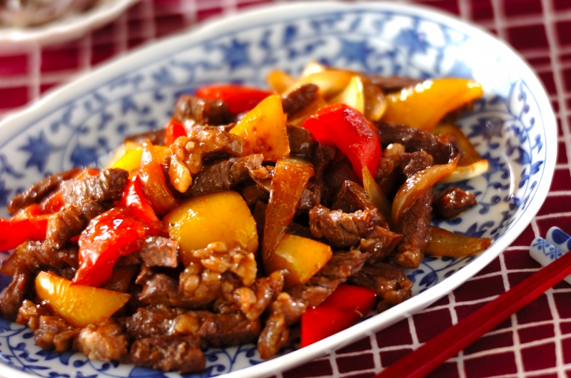 1枚のステーキ肉が、2人分のボリュームある炒め物に変身。カラフルな野菜でカサ増し&美味しさ増し。
