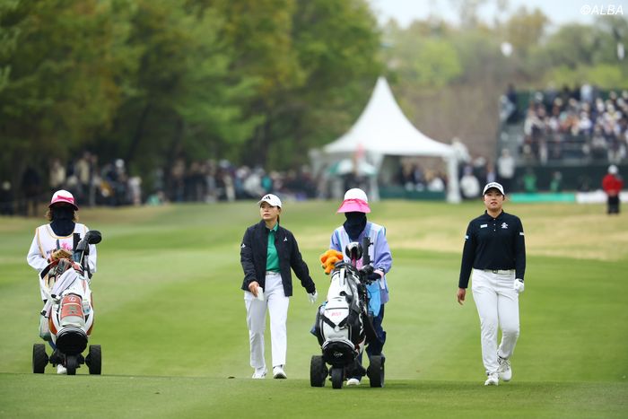 渋野と同じく米ツアーを主戦場にする岩井明愛、岩井千怜の姉妹は、佐久間朱莉を加えて渋野らのひと組後でプレーする。