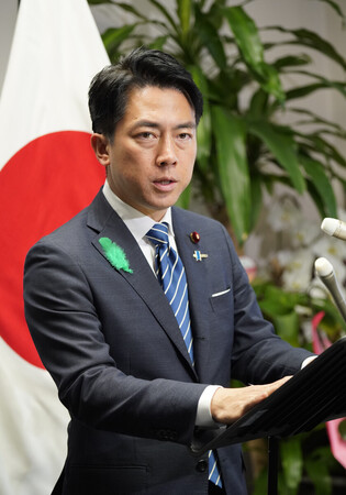 〔写真説明〕閣議後に記者会見する小泉進次郎防衛相=21日午前、国会内