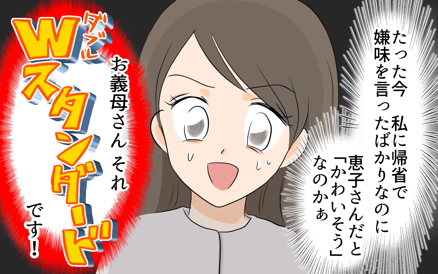 「つらかったね」と娘には優しいのに嫁には「夫婦喧嘩で帰るな」ってどういうこと!? 義母のダブルスタンダードに唖然 2026年4月23日 7:30 ウーマンエキサイト 中 大 JR東日本 40年ぶりの運賃値上げ 義母のあからさまな態度…本当にショックですよね。 嫁と娘でこれほど態度を豹変させ、しかも孫にまで見過ごせないほどの差別をするなんて…! 果たしてこの状態は、いつまで続くのでしょうか。 >>【まんが】ダブルスタンダード義母 関連記事【まんが】ダブルスタンダード義母「誰も呼んでないよね?」空気が凍る会場…それでもドヤ顔で言い放った言葉とは【アンティークドールの面の下 Vol.30】「まだ学校来てないんだって?」娘の不登校に無神経なママ友の一言がつらい…親としての焦りをどう対応すればいい!?「今月だけで10万以上…?」URLの先にあった“決定的な証拠”に言葉を失う【裏切りには代償を Vol.20】夫との不仲、不妊治療…悩みがあっても言わないだけ。友人と縁を切ったけど苦しくて…<変わってしまった友人 6話>【ため息がこぼれる日には】