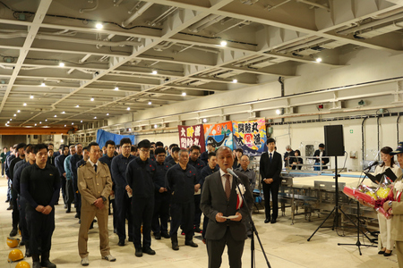 捕鯨母船「関鯨丸」が母港である山口県下関市の港に接岸し、船内で出漁式が行われた。同市の島崎敏幸副市長が「クジラの新たな栄養特性が科学雑誌で紹介されるなど、鯨食への関心は国内外で高まっている」と指摘。恒川雅臣船団長は「最高品質のクジラを多く持ち帰り、活気づいてきているクジラ市場をさらに盛り上げていけるよう、乗組員一丸となって頑張る」とあいさつした。