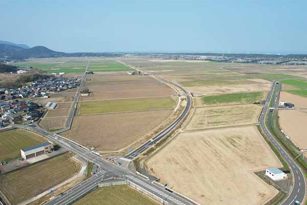 このため福井市の白方町から布施田町にかけて、現道の北側に広がる田園地帯を突っ切る形で白方布~施田バイパス(延長5.2km)の整備が進められてきました。これまで東側1.5kmが開通していますが、今回は残りの白方布~波寄町間3.7kmが完成し、全線開通を迎えます。