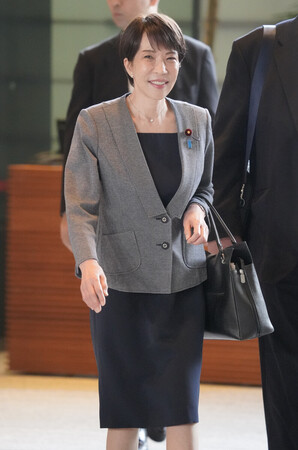 〔写真説明〕首相官邸に入る高市早苗首相=23日午前、東京・永田町