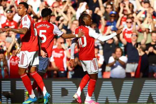 だが、先にゴールをこじ開けたのはホームのアーセナルだった。9分、右CKのサインプレーからボックス手前右でボールを受けたエベレチ・エゼが豪快に右足を振り抜くと、これがゴール左上隅の完璧なコースに突き刺さった。