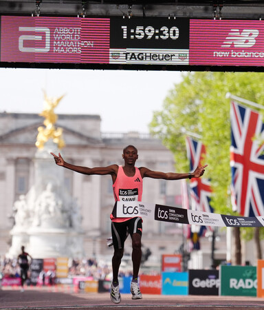 サウェ、史上初の1時間台=ロンドン・マラソン 2026年4月26日 19:54 時事通信社 中 大 運賃値上げで鉄道保守工事に注目 【ロンドン時事】ロンドン・マラソンは26日、ロンドン市街地コースで行われ、男子はセバスティアンキマル・サウェ(ケニア)が1時間59分30秒(速報タイム)で優勝した。2時間を切るのは史上初。