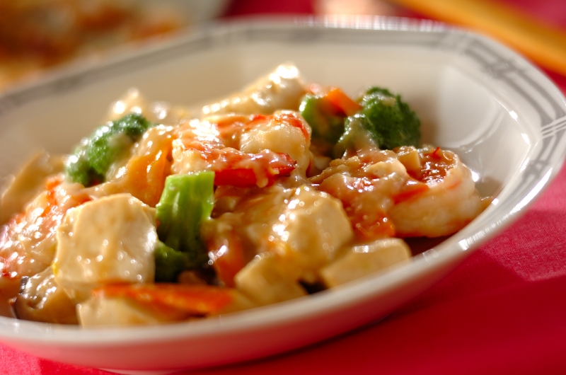 エビや豆腐のような淡白な具材には中華風のしっかり味がよく合います。仕上げの牛乳でクリーミーに!
