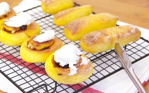 「発酵のタイミングが難しい」という方におすすめなのが、冷蔵庫で一晩寝かせる「オーバーナイト法」。温度管理を気にせず自分のペースで作れるので、パン作りが初めてでも失敗なくふっくら焼き上がります。かぼちゃのやさしい甘みが広がる生地は、朝食にもぴったりです。