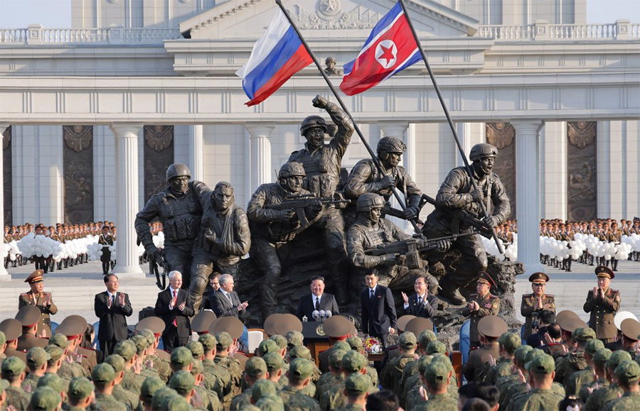 式典では、金総書記が兵士の墓前に花を手向け、「抱いて戦ったその土に生はかぶされても守り抜いた偉大な名誉とともに、烈士らの魂は永遠であろう。立派なこの国の息子、将校、兵士たちに『海外軍事作戦戦闘偉勲記念館』というこの名誉の壇上を謹んで捧げる」との親筆を残したとのことです。