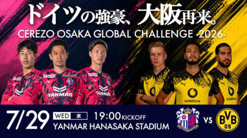 セレッソ大阪は30日、今年7月29日に『CEREZO OSAKA GLOBAL CHALLENGE -2026-』でブンデスリーガのドルトムントと国際親善試合を開催することを発表した。